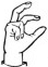 На ћирилици написано ЕМА КАЗНОВАЦ састоји се из 11 слова [?]. Исписано ћириличном једноручном азбуком за глувонеме: